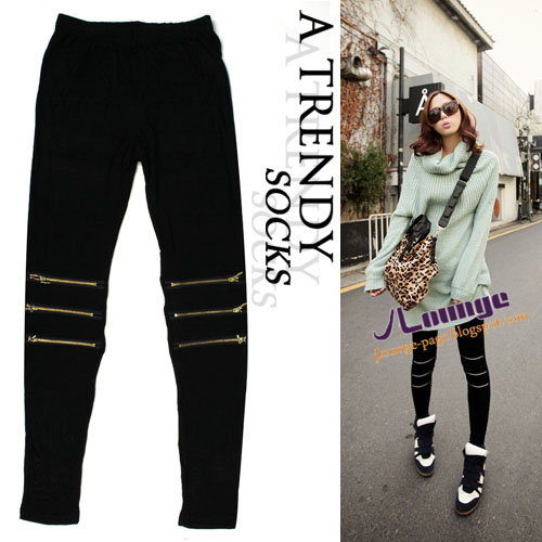 膝盖三条拉链装饰,莫代尔棉松紧弹力内搭九分裤